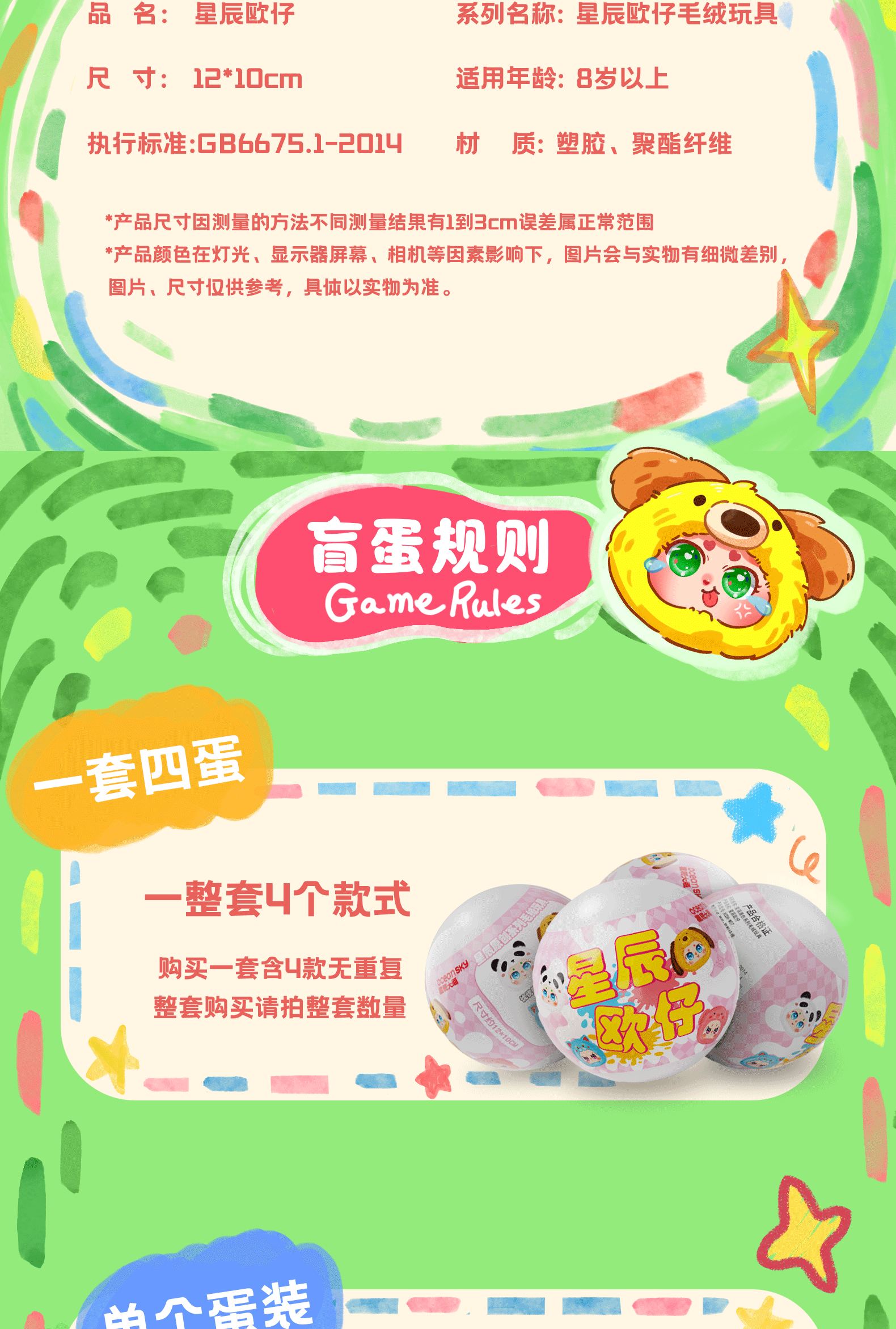 星辰欧仔,分为4个款式,分别是怒怒小猪、乐乐小狗、厌厌猫咪、忧忧熊猫款。欧仔表情可爱动人,毛绒柔软细腻,等你来收集!